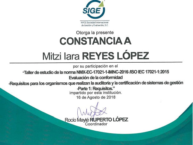 Tallar de estudio de la norma NMX-EC-17021-1-IMNC-2016