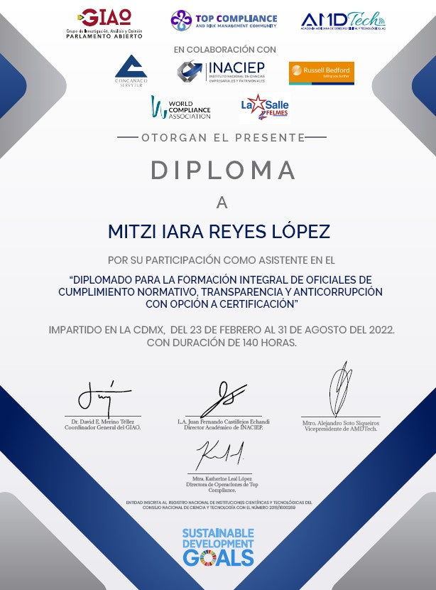 Diplomado para la formación Integral de Oficiales de Cumplimiento Normativo, Transparencia y Anticorrupción