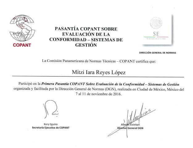 Participación en la Primera Pasantía COPANT Sobre Evaluación de la Conformidad- Sistemas de Gestión.