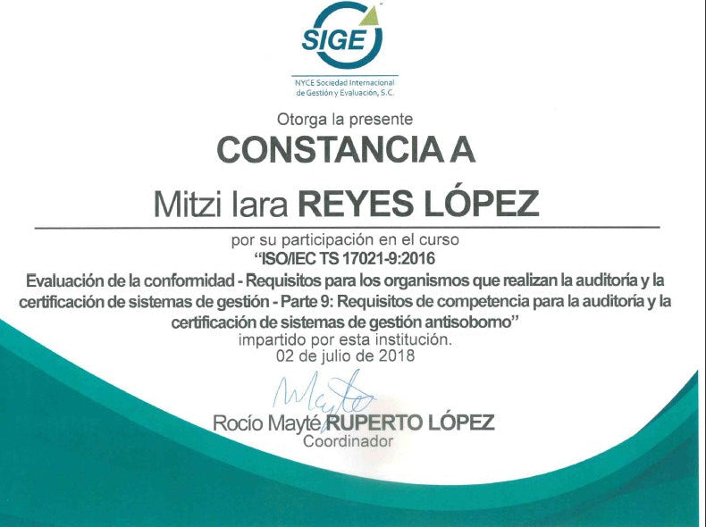 Auditor Líder para la Norma ISO 37001:2016 y a la Norma ISO 19011:2018