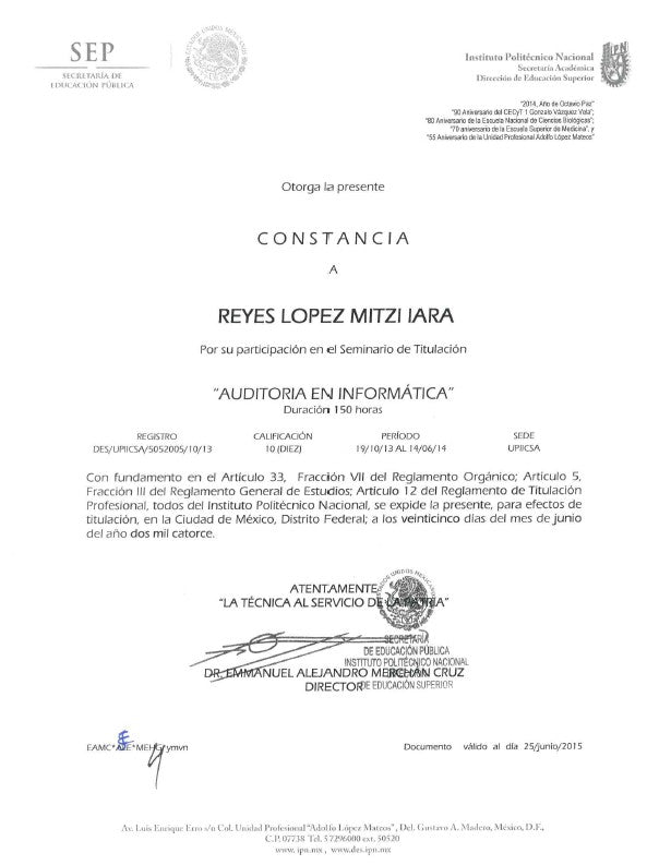 Estos documentos acreditan y avalan sus conocimientos y servicios como auditora experta
