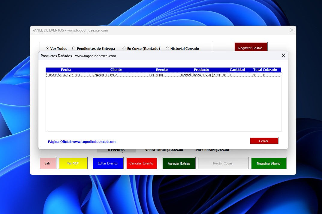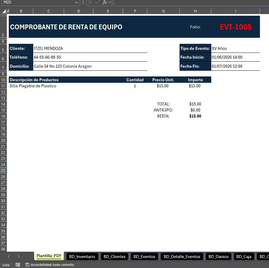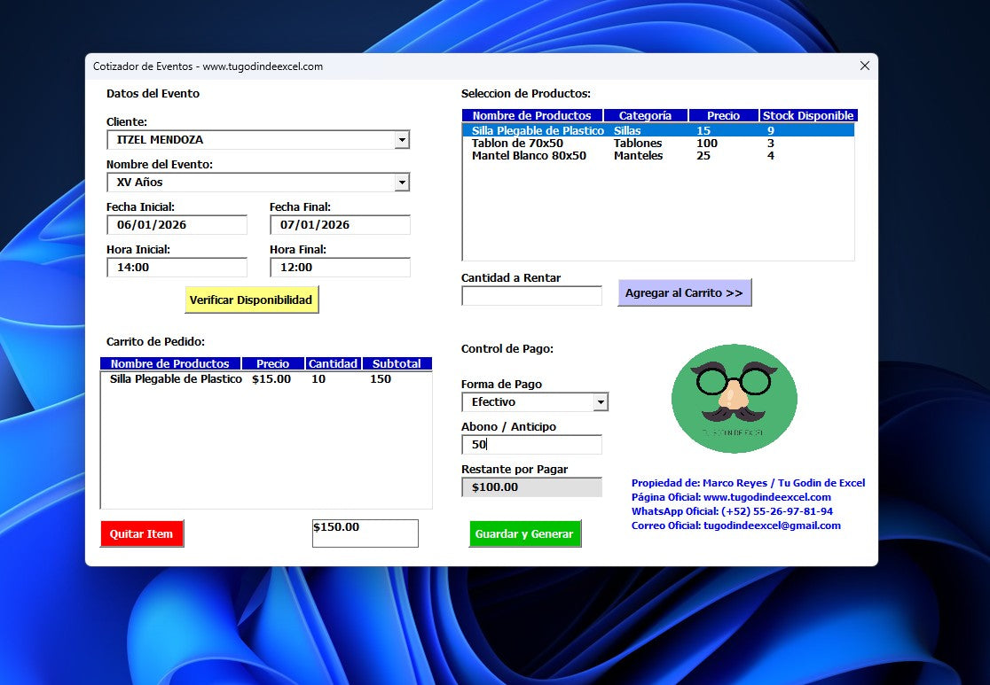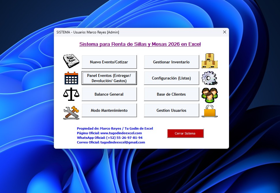 Sistema para Renta de Mesas y Sillas para Eventos 2026 en Excel