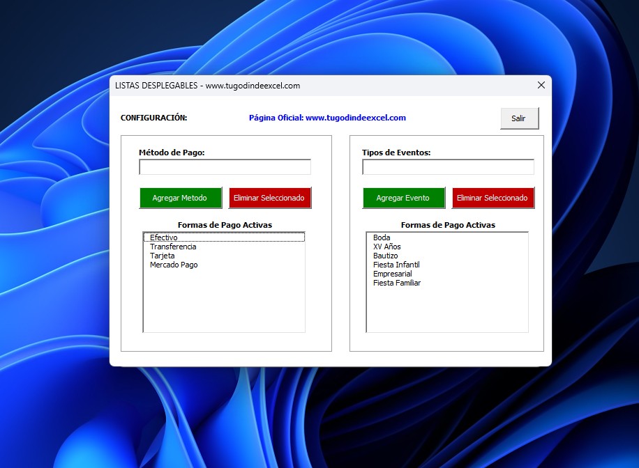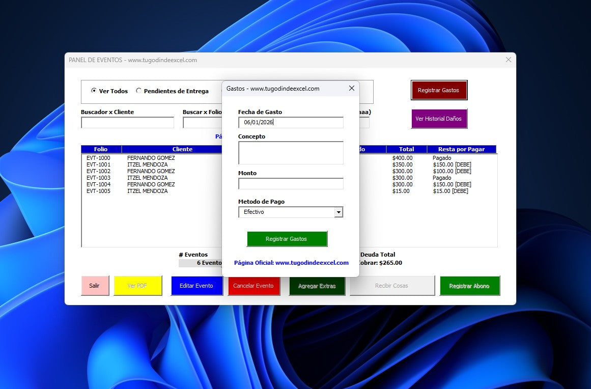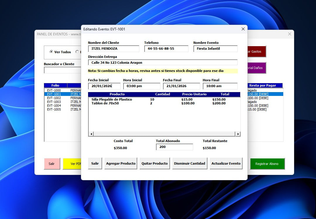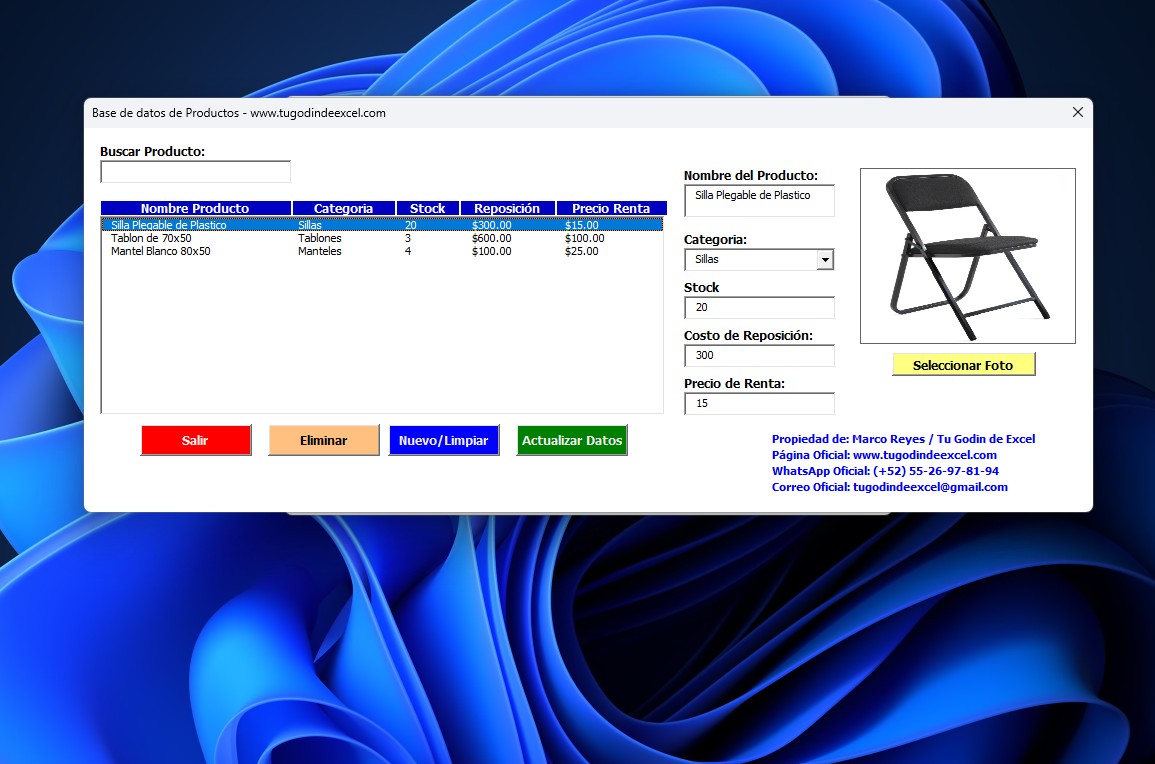 Sistema para Renta de Mesas y Sillas para Eventos 2026 en Excel